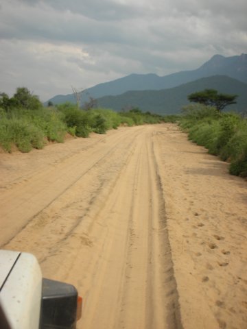 South of Lake Turkana the track is sandy and follows river beds over long streches