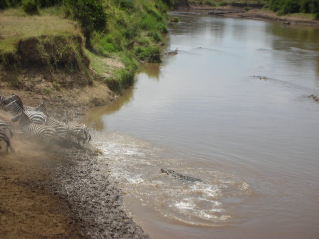 ...but then the crocodile swims back, submerged. Note the shadow in the foreground...