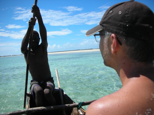 The fisherman heard our calls and we convinced him to take us on his little boat