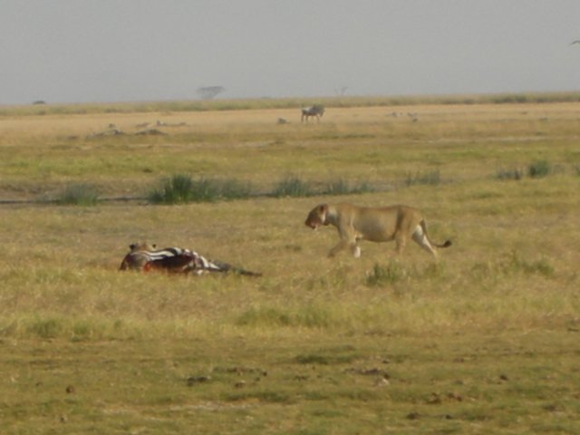 The morning we were leaving Amboseli Park, we saw two minibuses stopped for a while. This is what had happened...