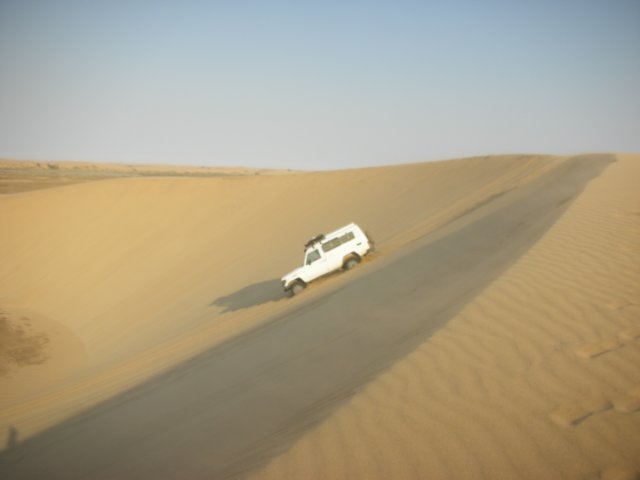 Driving in only 2WD is not always successful, we drifted too far to the right as the ground was not level. With 4WD we could continue
