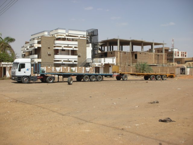Back on the road! On asphalt roads in Sudan, very long trucks are used